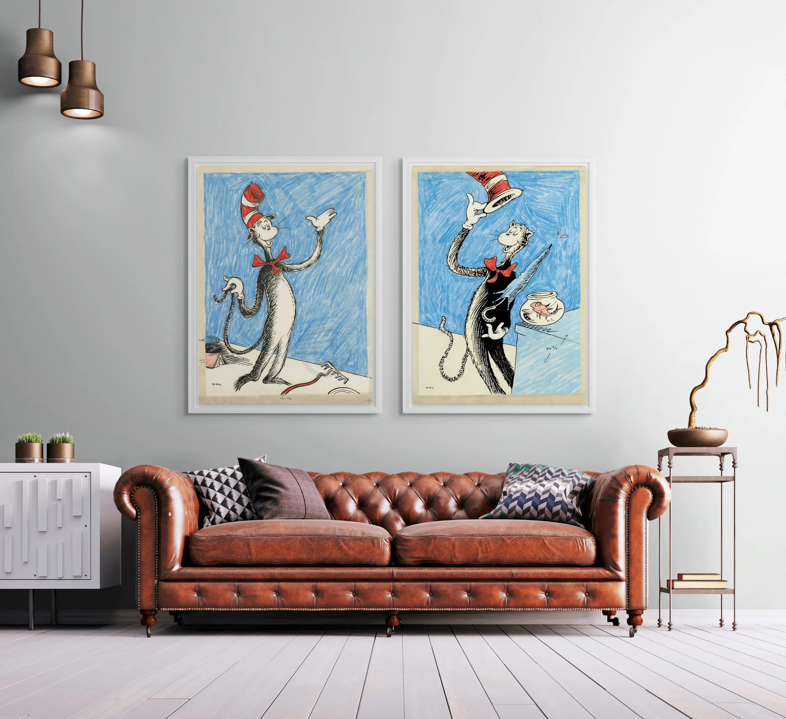 I Know Some New Tricks joins that artwork in celebrating The Cat as he is first introduced to the world. Together, both works reveal the creativity behind the Cat, and how Ted’s imagery continues to captivate us nearly 70 years after his first appearance.