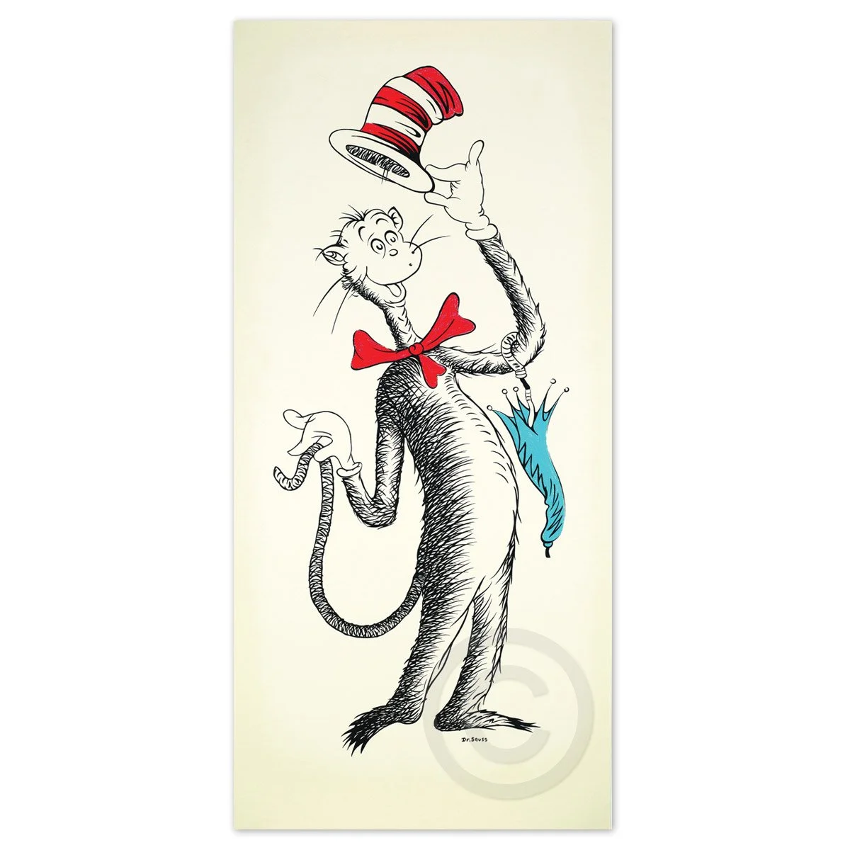 The “tipping hat” gesture is seen throughout the Cat in the Hat series. It’s as if Ted is greeting us time and time again in his work through his alter ego of the Cat. This new release is the first time Ted ever used this gesture.