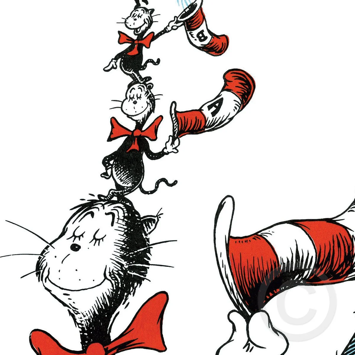 With a grin that implies wonder and mischief, The Cat himself - donning the famous accessory - became the logo for the Beginner Books series, published by Random House.