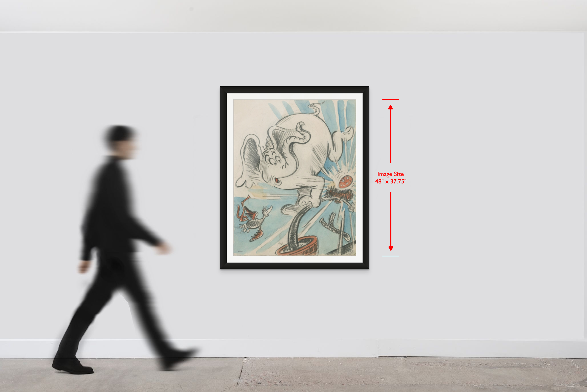 Seen together, the works offer a rare window into Geisel’s creative process. The diptych reads as both action and intention, movement and meaning. Horton is not static here. He advances, he commits, and he protects.